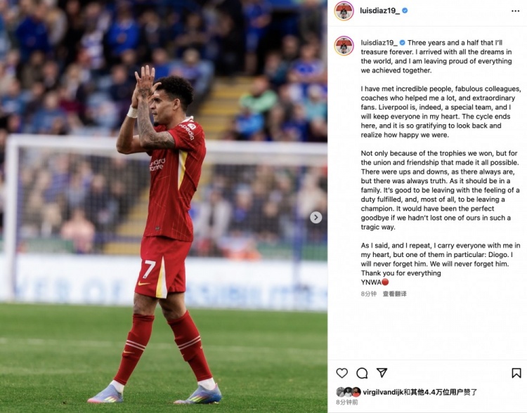迪亚斯深情告别红军:永远不会忘记若塔,谢谢你们给予我的一切