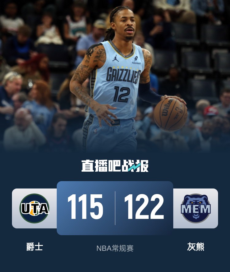 首节开打后双方互相试探,马尔卡宁联手科林斯不断取分,莫兰特连投带罚及时回应,灰熊领先6分结束首节争夺,次节回来,灰熊延续进攻火力,肯纳德手感滚烫连中三分,贝恩连送妙传串联全队,半场战罢,灰熊已经领先14分。易边再战后灰熊进攻出现停滞,爵士抓住机会多点开花缩小分差,三节结束后爵士追至4分,末节上来,爵士一波9-2实现反超,莫兰特外线命中稳住局势,决胜时刻肯纳德打成关键3+1,塞克斯顿连拿4分再度反超,肯纳德飚中大心脏三分,莫兰特三分终结悬念,最终灰熊122-115击败对手。