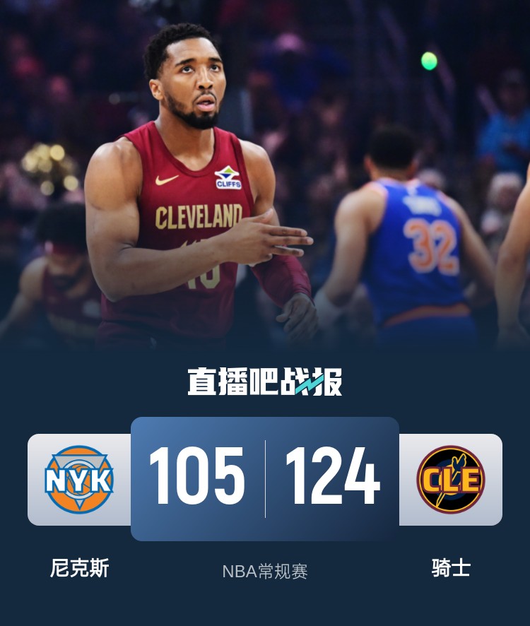 米切尔27+6 阿伦11中10 唐斯25+13+7失误 骑士15分逆转尼克斯