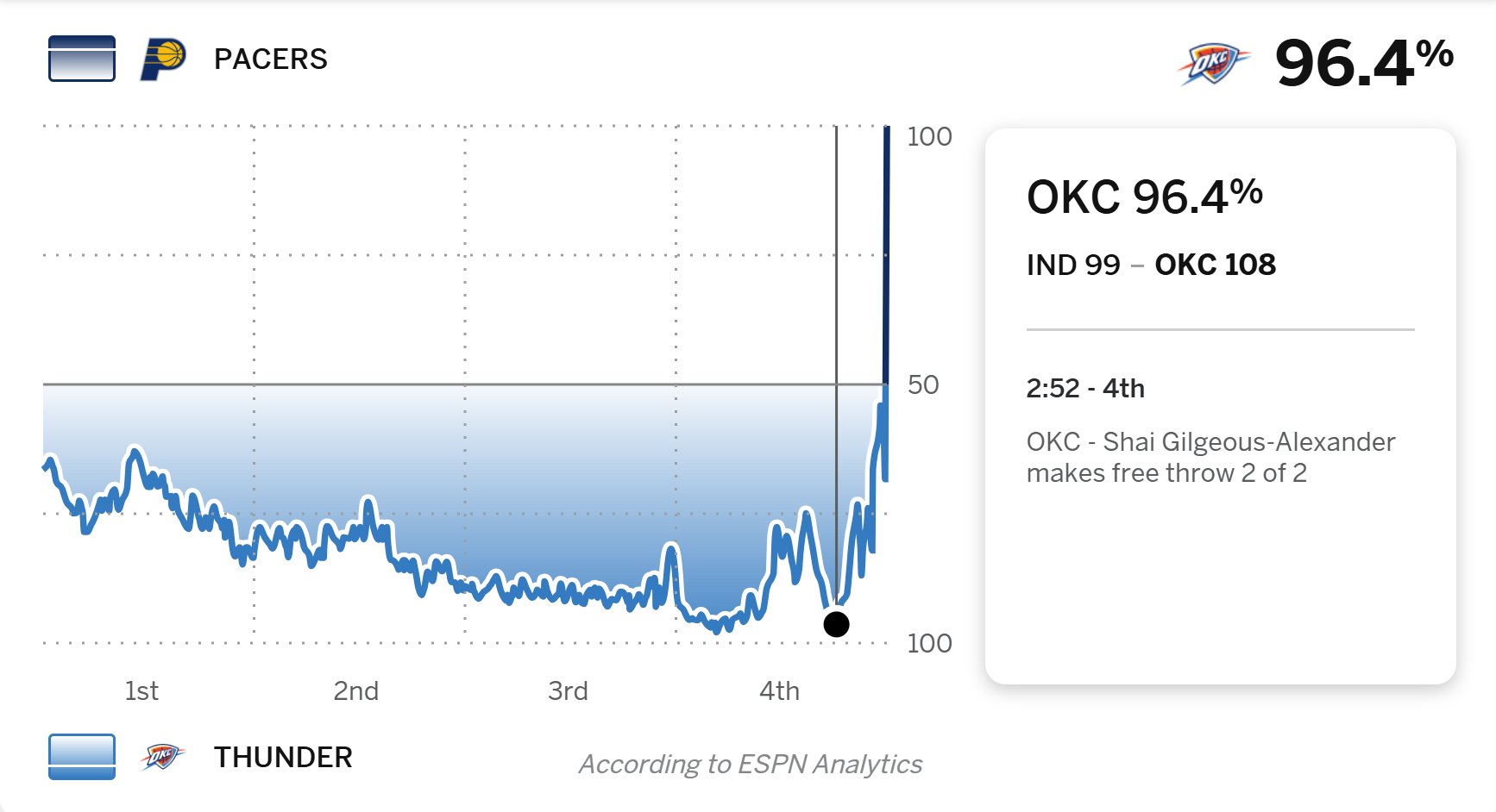 本场比赛最后时刻,雷霆的获胜概率