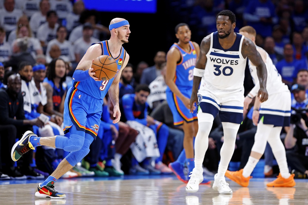 5月29日讯 NBA西决G5,雷霆124-94击败森林狼,大比分4-1淘汰后者杀入总决赛。整个系列赛,亚历山大场均轰下31.4分5.2篮板8.2助攻1.8抢断,...