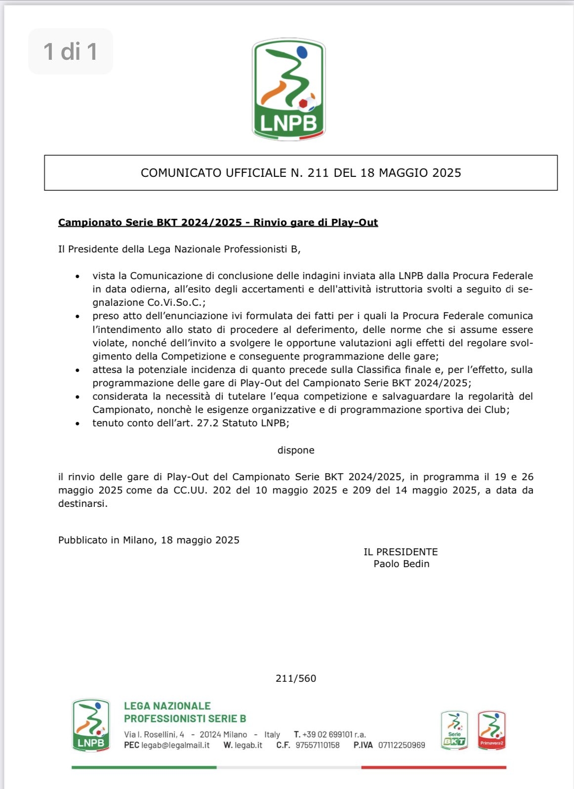 05月18日讯 意乙联赛发布官方公告,由于发生会改变联赛排名的扣分情况,原定于5月19日举行的意乙保级附加赛延期举行。据多家媒体报道,布雷西亚由于财政违规,将被扣除4分,降入意丙。